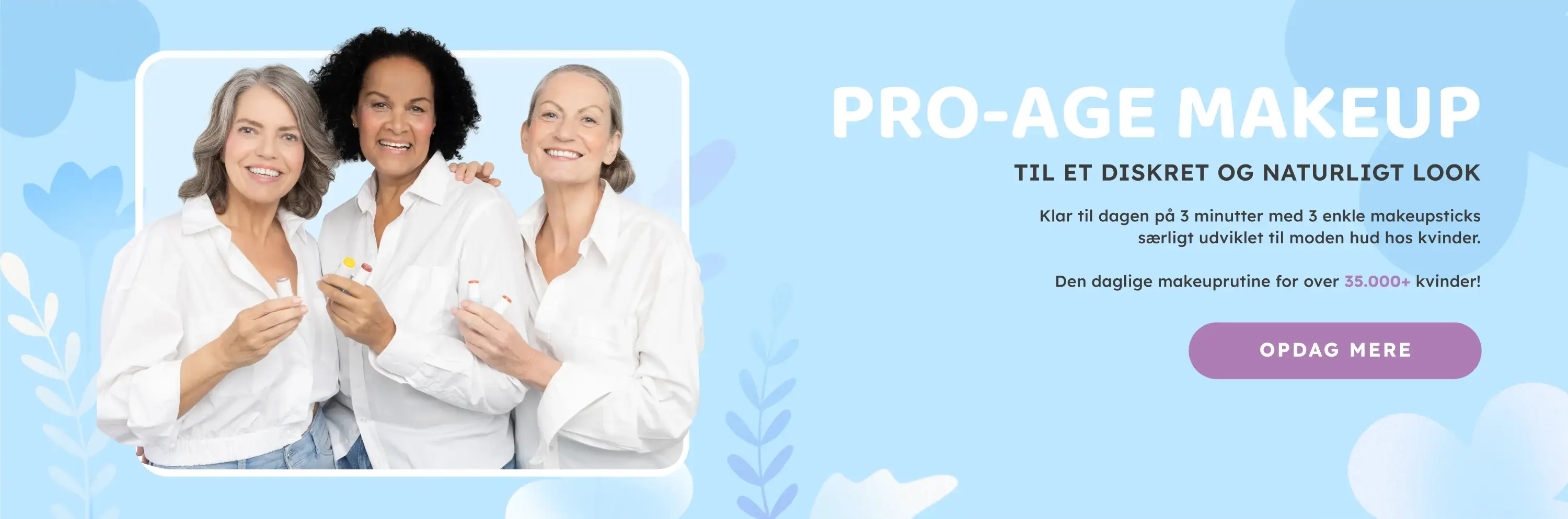 Vores mission er at give kvinder over 45 mere selvtillid ved at få dig til at stråle naturligt på bare 3 minutter. Det gør vi med multifunktionelle makeupprodukter, der er baseret på en cremeformel.