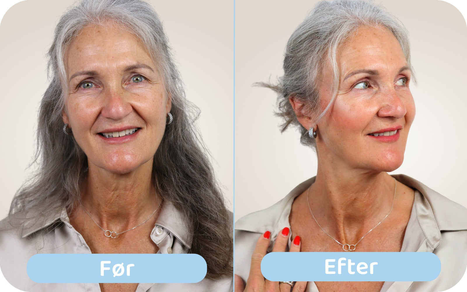 Bruger du alle 3 stifter sammen? Så kan du på ingen tid skabe et frisk og naturligt look — perfekt tilpasset den modne huds behov!